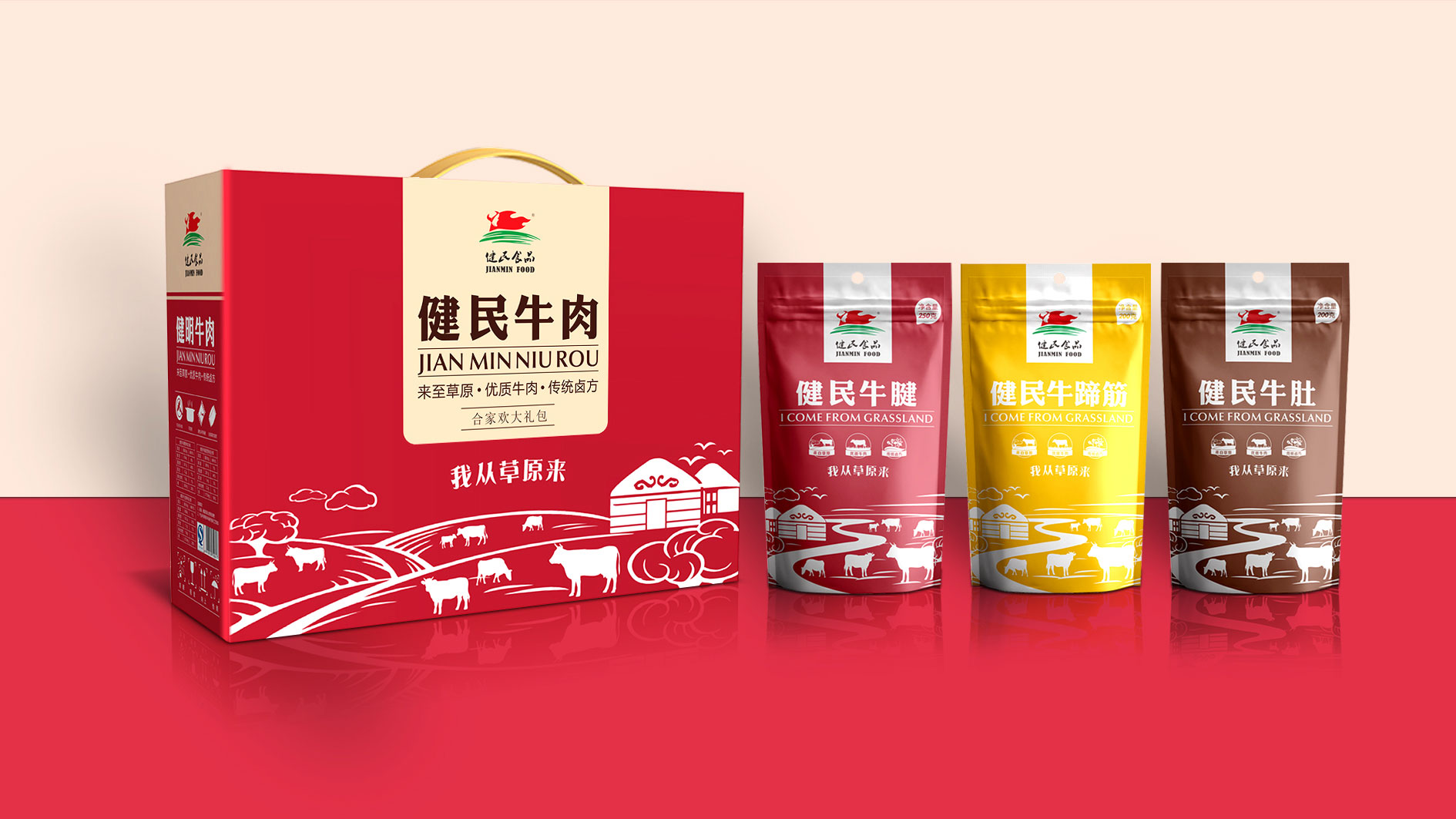 信立浩達廣告一直以來關注農產品品牌的包裝設計,認為要用文化創意的思想去挖掘產品的文化內涵,用品牌價值去占領消費者的心智,從而贏得消費者,贏得市場!我們為河南健民牛肉做的春節禮盒包裝設計,就是將中國傳統文化中的《五牛圖》創造性地設計在產品包裝上,得到了客戶的認可。讓企業從過去的賣產品轉為賣文化!