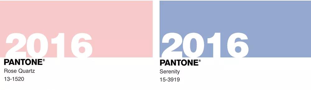 潘通2016年度代表色:13-1520 Rose Quartz (水晶粉) 與 15-3919 Serenity (寧靜藍(lán))