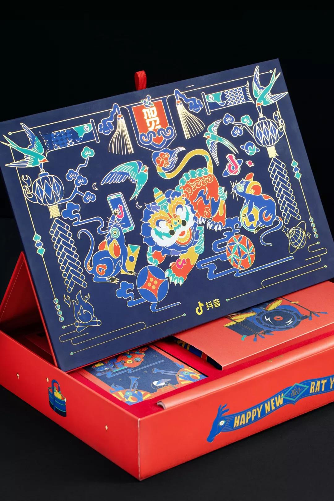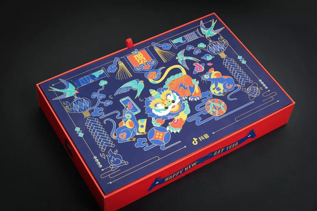 抖音新年禮盒玩了一把諧音梗,禮盒主題叫做“樂不思鼠”,包裝設計硬核搖滾,配合中國傳統元素,讓你開啟潮酷鼠年。