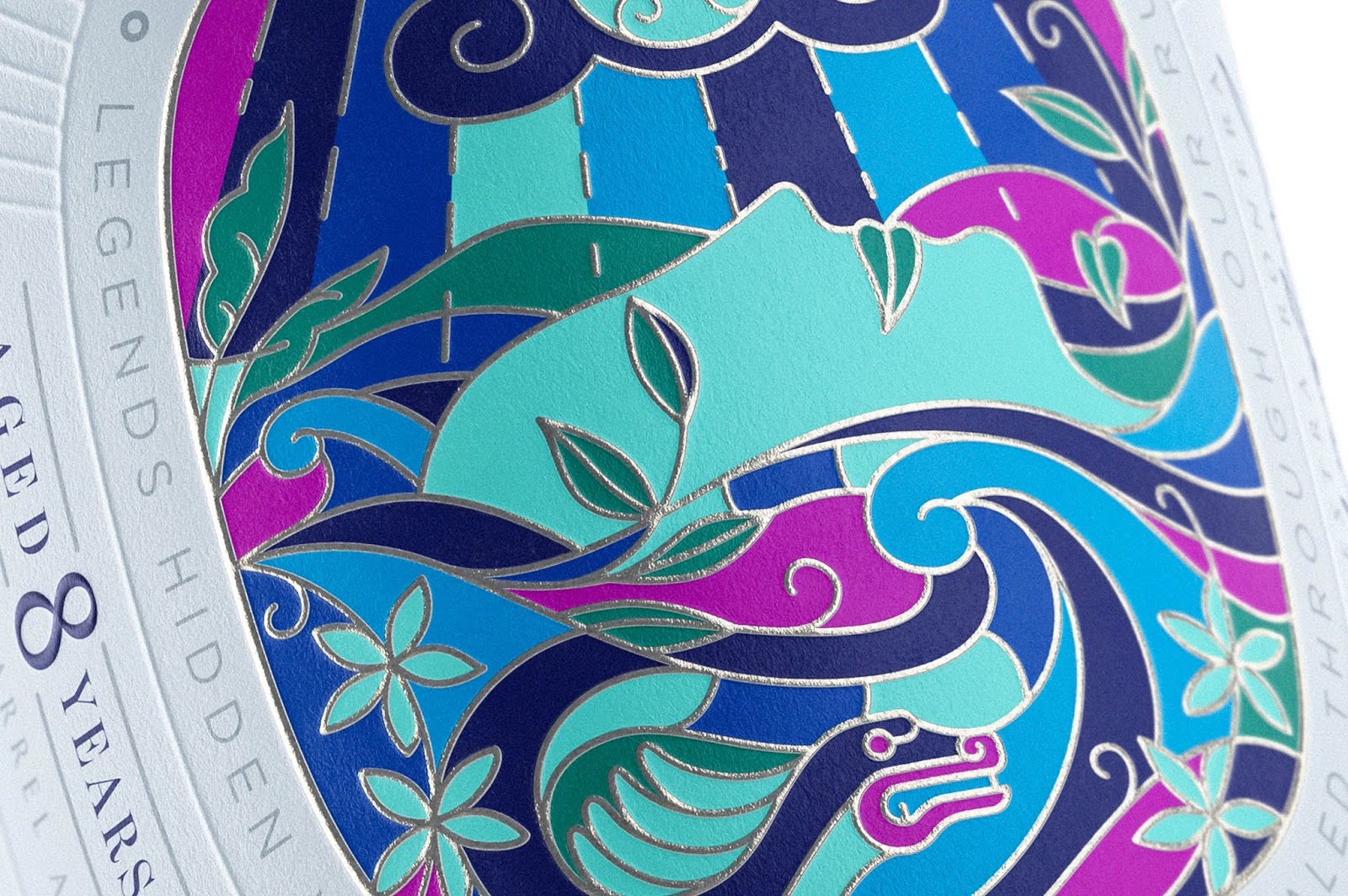 Cihuatan是一個來自薩爾瓦多的特制朗姆酒品牌。在納瓦特方言中,“Cihuatán”的意思是“女神熟睡的土地”。通過插圖刻畫鮮花綻放過程中的力量和美麗,通過女神睡顏表達(dá)女神的繁衍生息的力量。在工藝上“女神”的輪廓運用燙銀和凸紋的技術(shù),讓畫面有了些許立體感,增強畫面層次。色彩上,采用當(dāng)?shù)靥赜械呐屠渖钆浞绞剑屛幕姆柛由钊肴诵摹?/span>