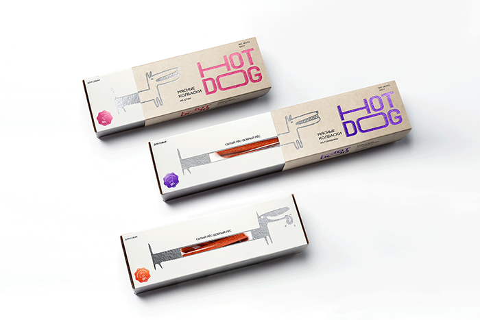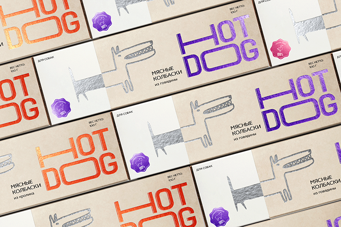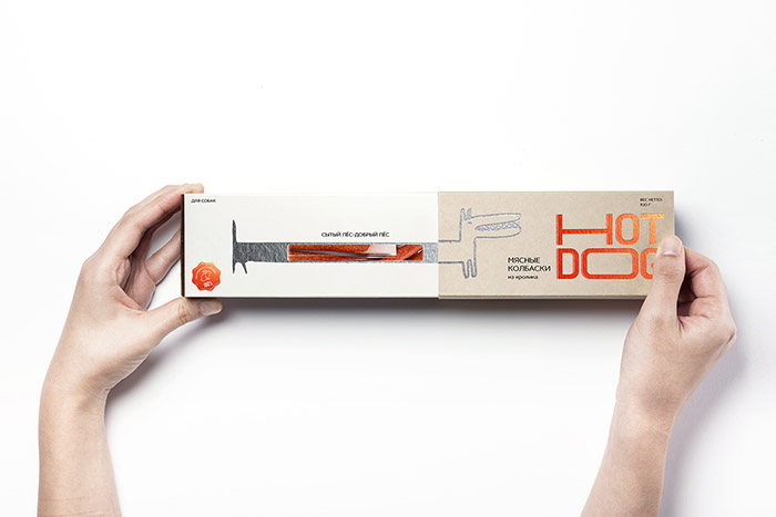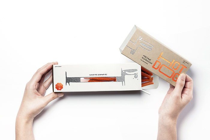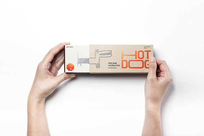 這是David Hovhannisyan設計的寵物狗香腸包裝,品牌文字形象生動,很好的體現(xiàn)了香腸被拉出來的不斷變長的感受,同時兼具識別性,充滿趣味性。