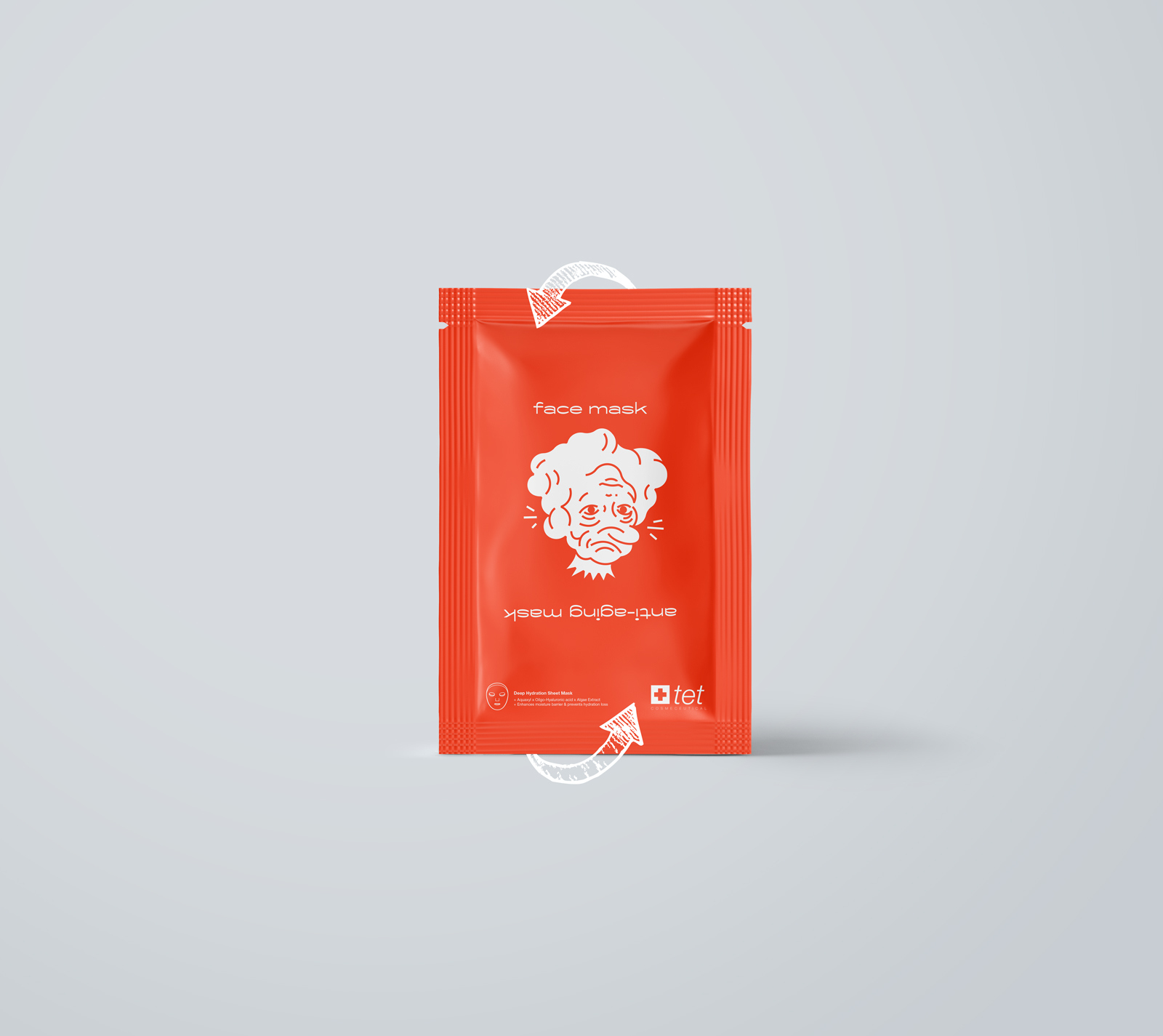 Anti-aging是一款抗衰老面膜,采用幽默風趣的表達手法將產品的特點清晰展現出來,將包裝的口袋翻轉過來,立刻把一個皺巴巴的老太太變成了一個年輕漂亮的女人,趣味性十足,抓住了人對有趣事物充滿好奇的心理。
