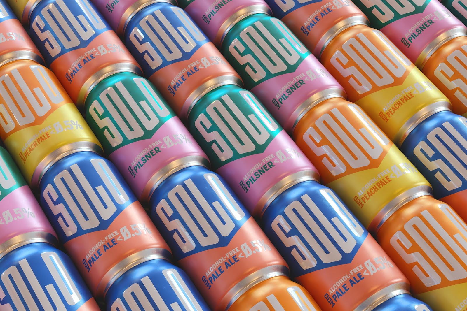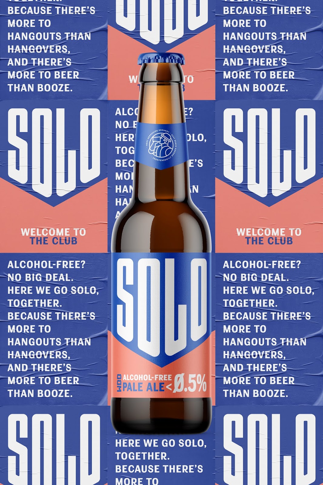 Solo無(wú)酒精啤酒包裝,三個(gè)關(guān)鍵詞運(yùn)動(dòng)感,下箭頭,對(duì)比色。抓住了人們心智厭惡混亂的特點(diǎn),簡(jiǎn)潔明了的描述了產(chǎn)品賣點(diǎn)無(wú)酒精淡啤,通過(guò)向下的箭頭不斷暗示消費(fèi)者酒精度數(shù)已經(jīng)下降到零,對(duì)比色區(qū)分信息,增強(qiáng)識(shí)別性。